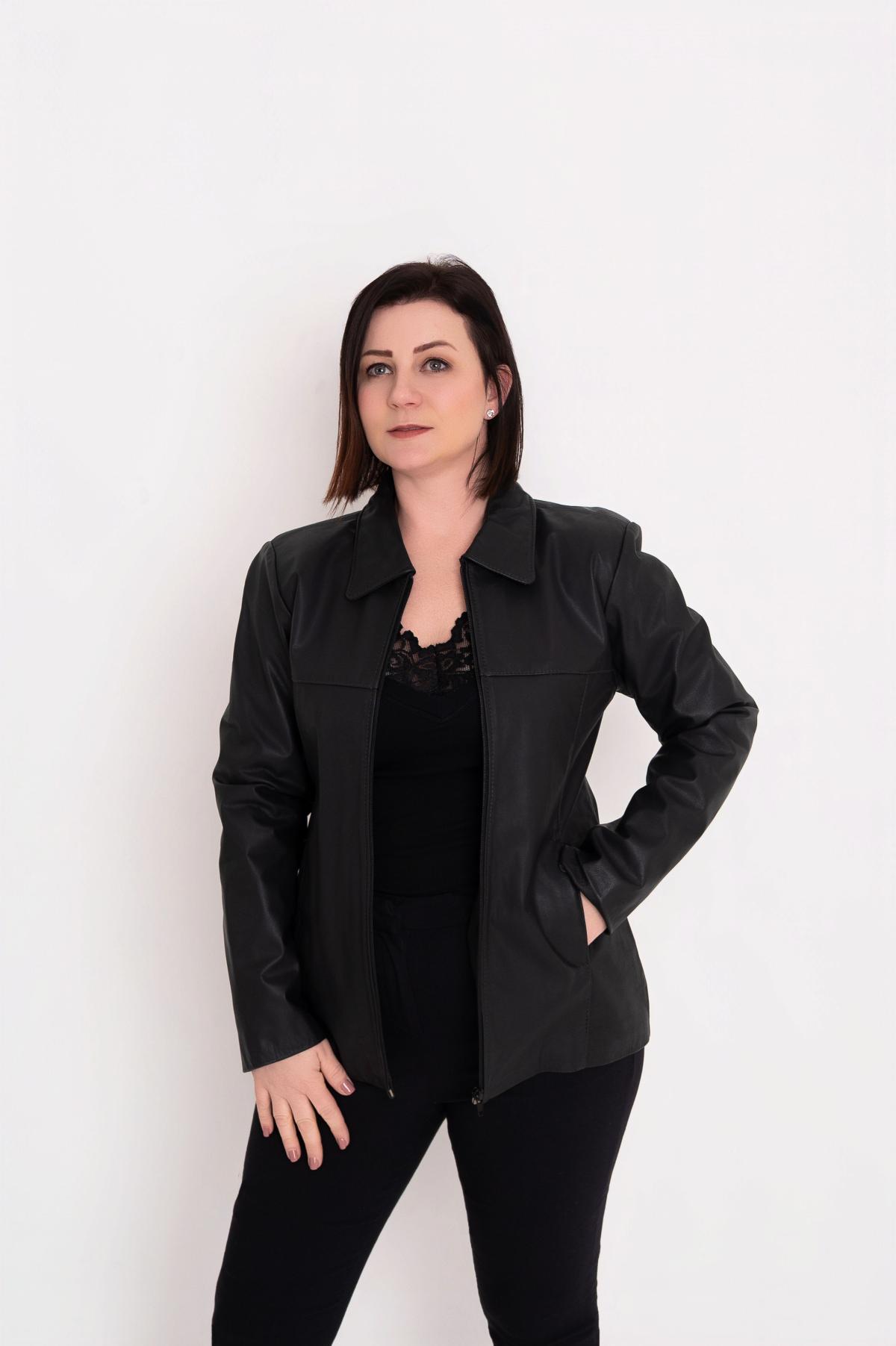 Com fechamento frontal por zíper e bolsos laterais funcionais, é uma peça versátil que transita facilmente entre o casual e o sofisticado. O acabamento suave do couro garante um toque macio e aparência refinada, enquanto o forro interno oferece conforto térmico nos dias mais frios.